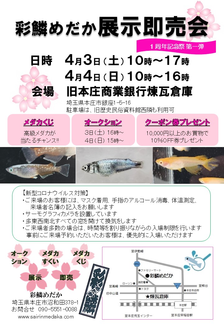 4月3日(土)~4日(日) 彩鱗めだか展示即売会