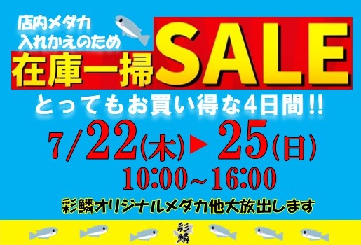 7月22日(木)~25日(日) 店内在庫一掃SALE
